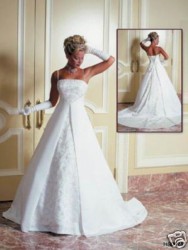 Svatební šaty s pevného saténu,zdobeny krajkou.velice slušivý A střih i pro silnější postavy.